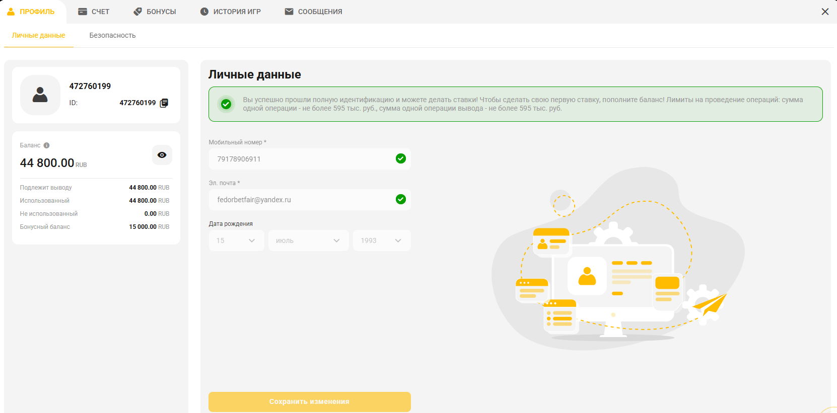 Номер аккаунта: 472760199. Зарегистрирован во многих конторах: Fonbet, Pari, Leon, Бетсити, Marathon, Лига ставок. Имею подтвержденный профиль на ЦУПИС. Нигде не встречал такой дичи как здесь. После установки приложения данной конторы через несколько дней пришло предложение о фрибете до 10000 от 25% от депозита. Закинул 40 тысяч рублей и проставил на хоккейный матч Динамо Минск - Нефтехимик, то что Динамо Минск выиграет хотя бы один из периодов (номер ставки: 5933836269). В итоге был заход и я естественно захотел вывести средства. После чего получил блокировку аккаунта и отправку на верификацию согласно правилам согласно их правилам пункта (мошеннические действия). Только я не понимаю в чем было мошенничество. Сам букмекер прислал предложение о фрибете. Я проставил деньги чтобы их вывести. В итоге ни фрибета, ни денег, а несправедливо заблокированный аккаунт. P.S. Все фотографии для верификации отправлены но ответа уже нет почти сутки. Судя по всему все это затянется. Данный букмекер как я понял любит удерживать средства ссылаясь на свои, как они говорят "ПРАВИЛА". Стыд и позор.
