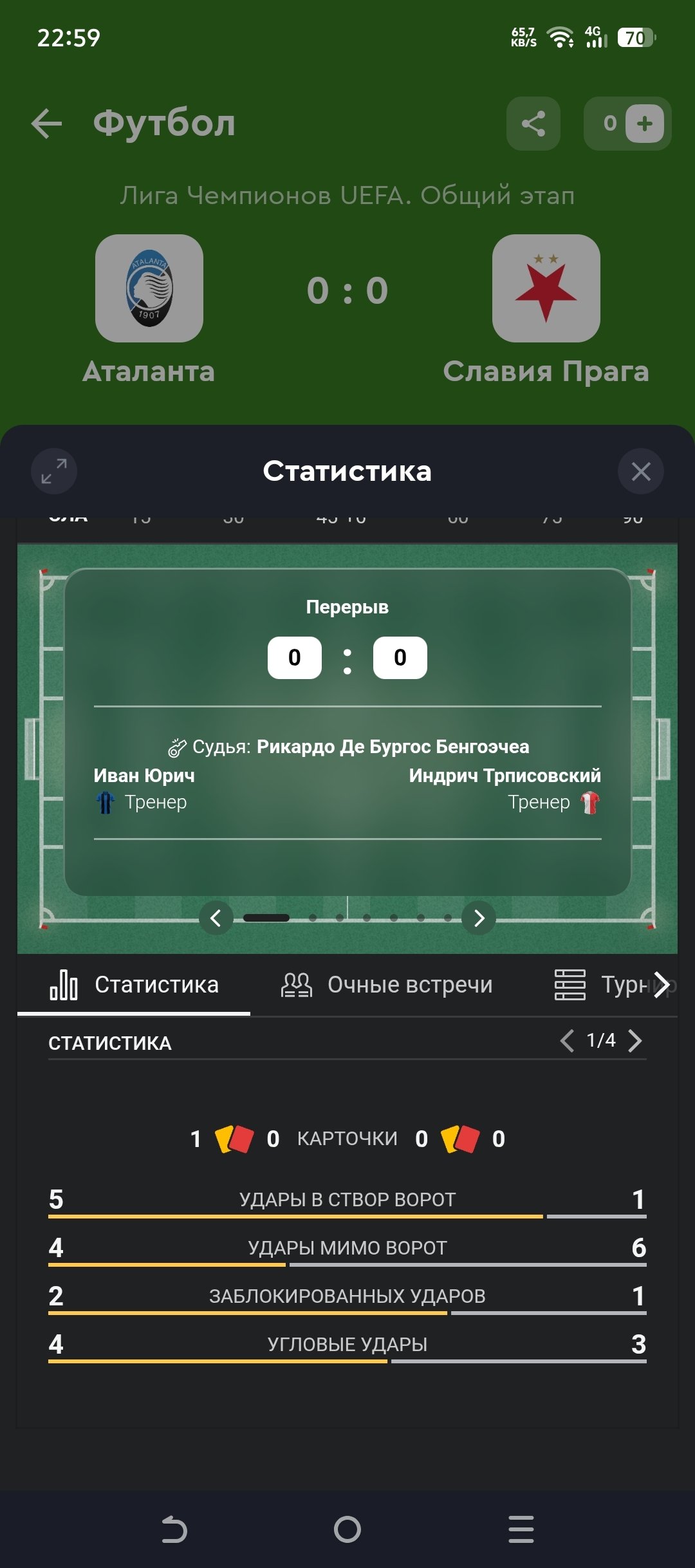 Согласно статистики в бк "Олимп бет" в первом тайме Аталанта нанесла 5 ударов в створ.