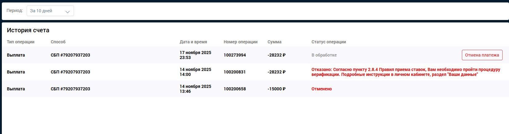 Приветствую. Совершал ставки на Dota 2 (The international) в лайве, после чего выиграл более 98000 рублей. Сделав попытку вывести 15000 рублей, получил блокировку аккаунта ( проверка по пункту правил ), которая затянулась на 63 дня, по результатам которой все мои пари были аннулированы - на аккаунте лежала сумма всех депозитов на аккаунт. Это при том, что я никаких правил не нарушал - ставил только на ТОП события в лайве. При попытке вывести свои средства (28232 рубля), напоминаю, сумму депозита, администрация сообщила, что вывод занимает от 1 минуты до 90 рабочих дней. Считаю это неправомерным удерживанием средств. Прошу помочь с данной ситуацией - пусть букмекер предьявит причины обнуления ставок + причины долгого вывода.