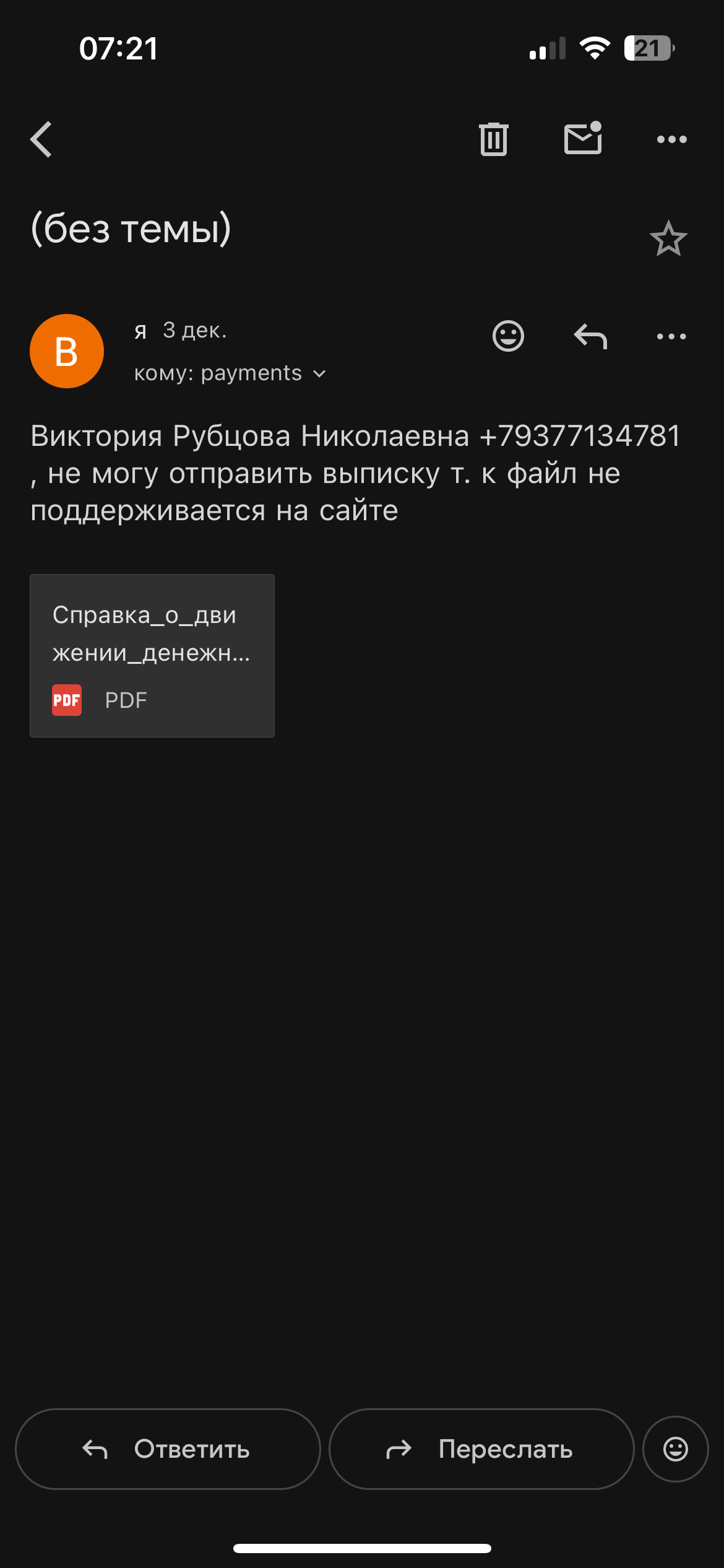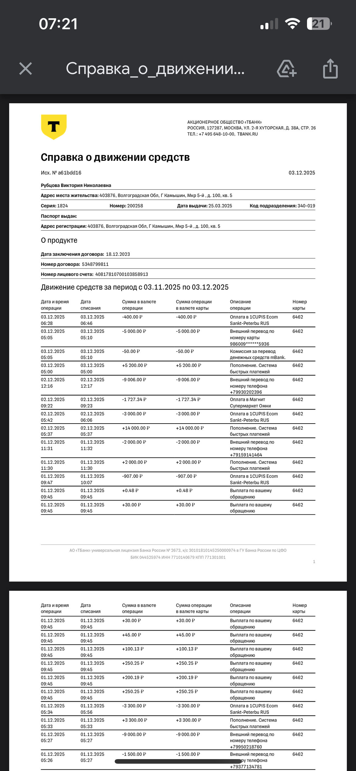 а по поводу выписки вот так файлом на почту можно отправлять если тинькофф не даёт фото там 2 странички минимум в пдф