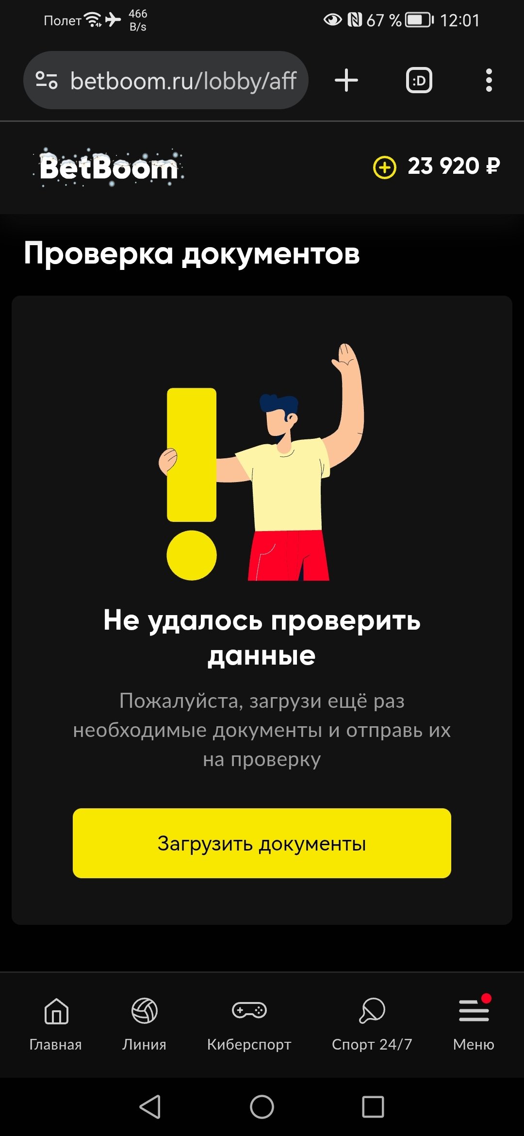 Бетбум запросил верификацию после многих лет игры и почти миллионного минуса. Все документы прошли проверку, кроме банковской карты. Я многократно писал, что эта карта виртуальная и физической карты нет, поэтому запросил у банка и предоставил договор с банком где указана эта карта с печатью, скрины из мобильного банка. Однако это все не проходит проверку и требую фото именно физической карты.