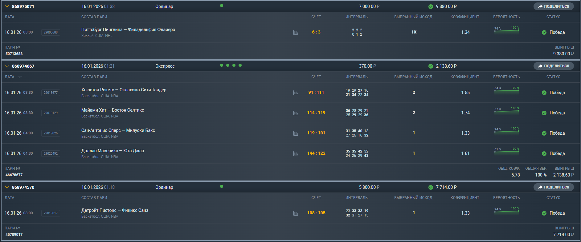 И все остальные ставки на хоккей также