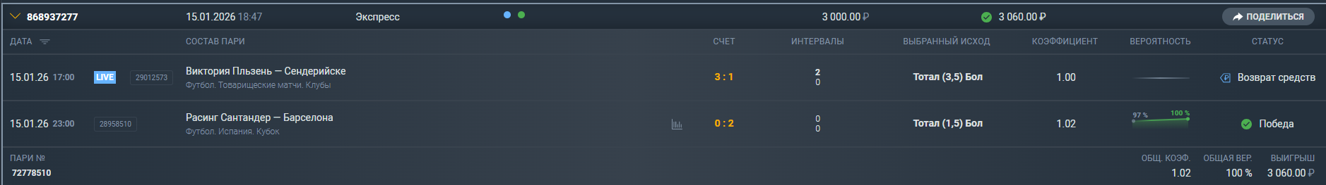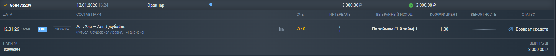 Жалоба №14331069: Некорректно принятое или рассчитанное пари