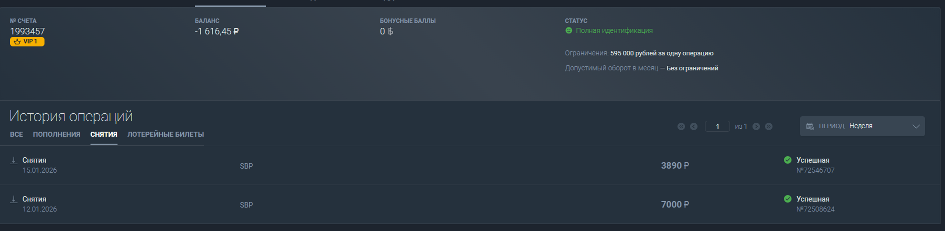 Вчера снова я совершил депозит в 3000 рублей.