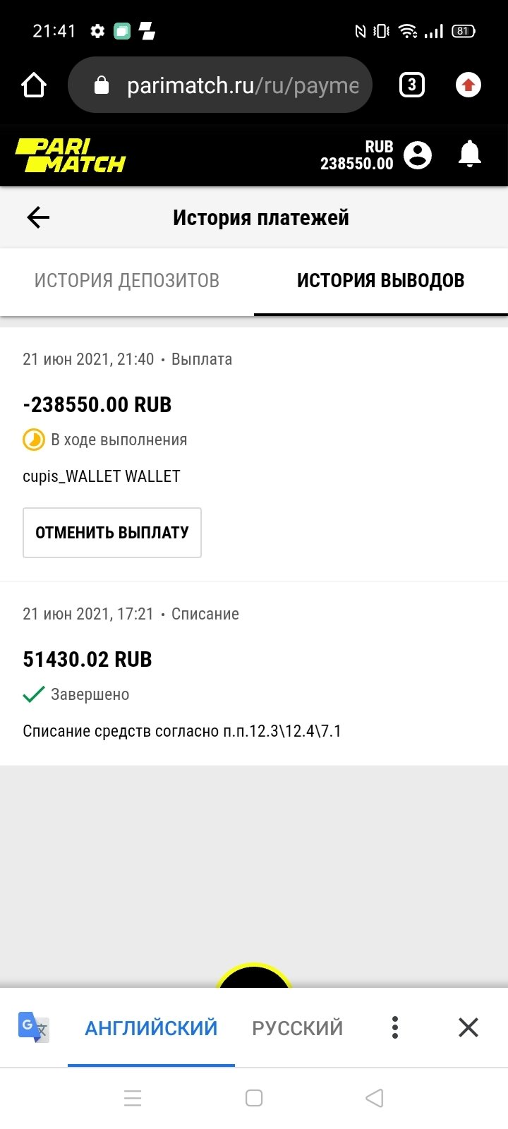 Арбитраж Легалбет получил комментарии и разъяснения со стороны букмекера – выигрыши по решению службы СБ аннулированы за нарушение правил – передача аккаунта в управление и ставки не владельцем аккаунта. При этом владелец аккаунта идентифицирован согласно законодательству РФ. Арбитраж Легалбет ставит под сомнение законность аннулирования выигрышей клиентов на основании видеоверификации. Решение этого вопроса за пределами компетенции Арбитража. Сумма депозитов доступна к выводу.
