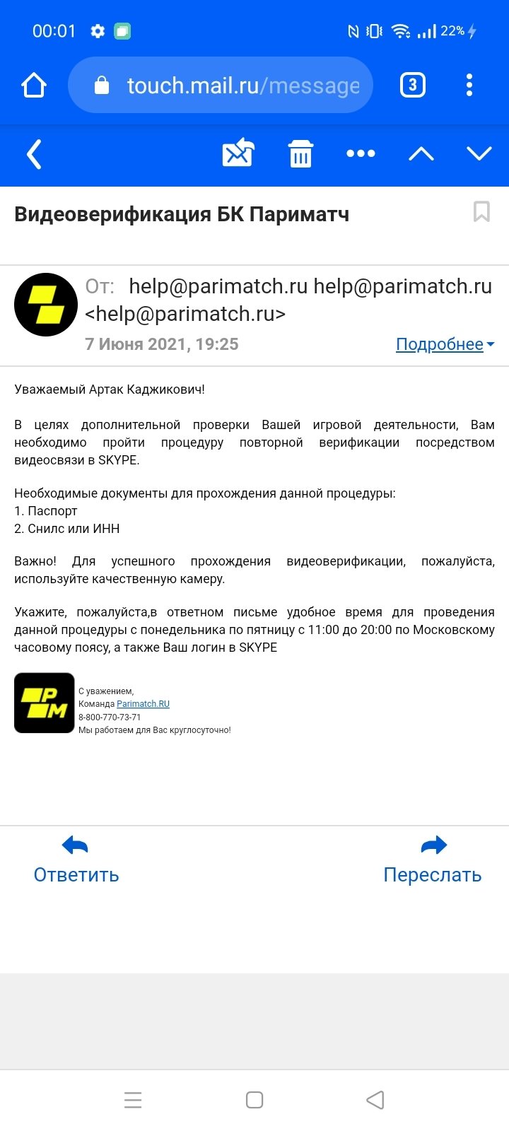 Добрый вечер, прошу оказать помощь в долгой и нудной верификации в париматч . С проводят свою верификацию , запрашивая раз в 10-13дней все образные фотографии. Скинула - селфи с паспортом и листком для париматча , квитанцию ЖКХ . Свидетельство о временной регистрации. В итоге обратившись комне другим именем запросили пройти видеоверификацию. В итоге с трудом получилось ее назначить так как то они в чате могут принять время то им на почту сугубо нужно писать. Ну хорошо прошла . Сотрудник конце видеоверификации сказал уточнить через неделю. Сегодня целый день пыталась уточнить но меня всячески игнорируют. Помогите решить мою проблему )