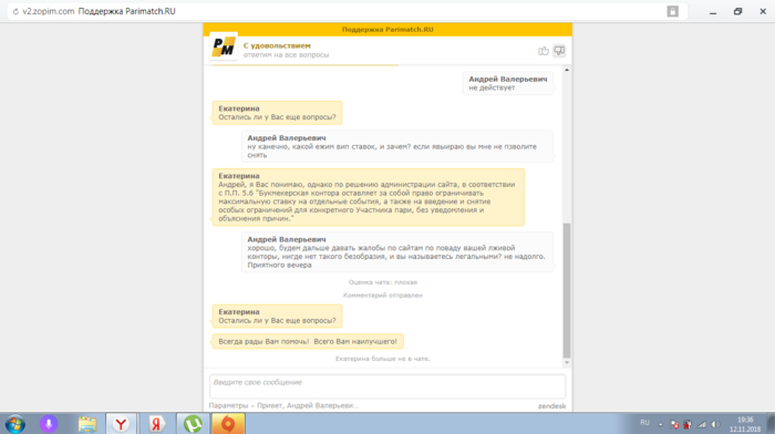ранее писал жалобу сюда, где пари матч ответили: вывод средств приостановлен на основании пункта правил 12.3 "В случае подозрения в мошенничестве (мультиаккаунтинг, использование любого ПО для автоматизации интерактивных ставок, злоупотребление программами лояльности и т.д.) букмекерская контора вправе приостановить прием интерактивных ставок, а также выплаты по ним на время проведения проверки игровой деятельности. Процесс проверки может занимать до 14 ========================== прошло 8 дней, также не дозвониться в поддержку, мой номер в чёрном списке у них, хотя не общался ни разу, написал в чате "Мол, что там у меня" и в этот раз ответили совсем иначе скриншоты выкладываю, продолжение в комментариях логин:2765022