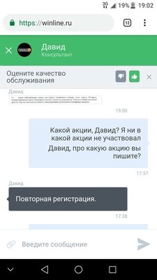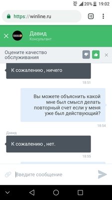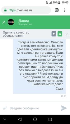 Зарегистрировался в винлайне,после предоставил паспорт сотруднику и начал играть. Через некоторое время и некоего увеличения баланса мой личный кабинет был заблокирован под предлогом повторной регистрации, и попасть в него я не могу. Из переписки в чате с сотрудником понял что меня обвиняют в повторной регистрации, хотя это невозможно. Задавал много вопросов сотруднику,какой мне смысл делать повторную если у меня уже есть действующий счет, как я прошел у вас все виды регистрации,идентификации,как я смог зарегистрироваться в ЦУПИСе спокойно?? Но ответов он ни на один не дал. Что мне делать при подобном поведении букмекера?