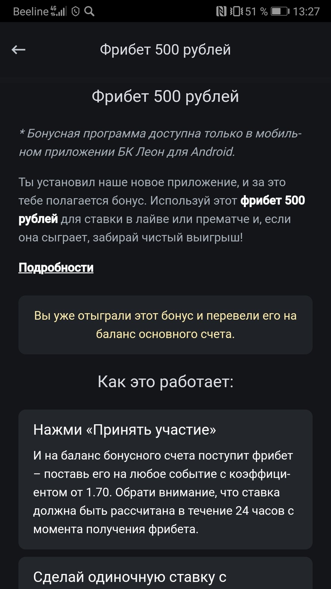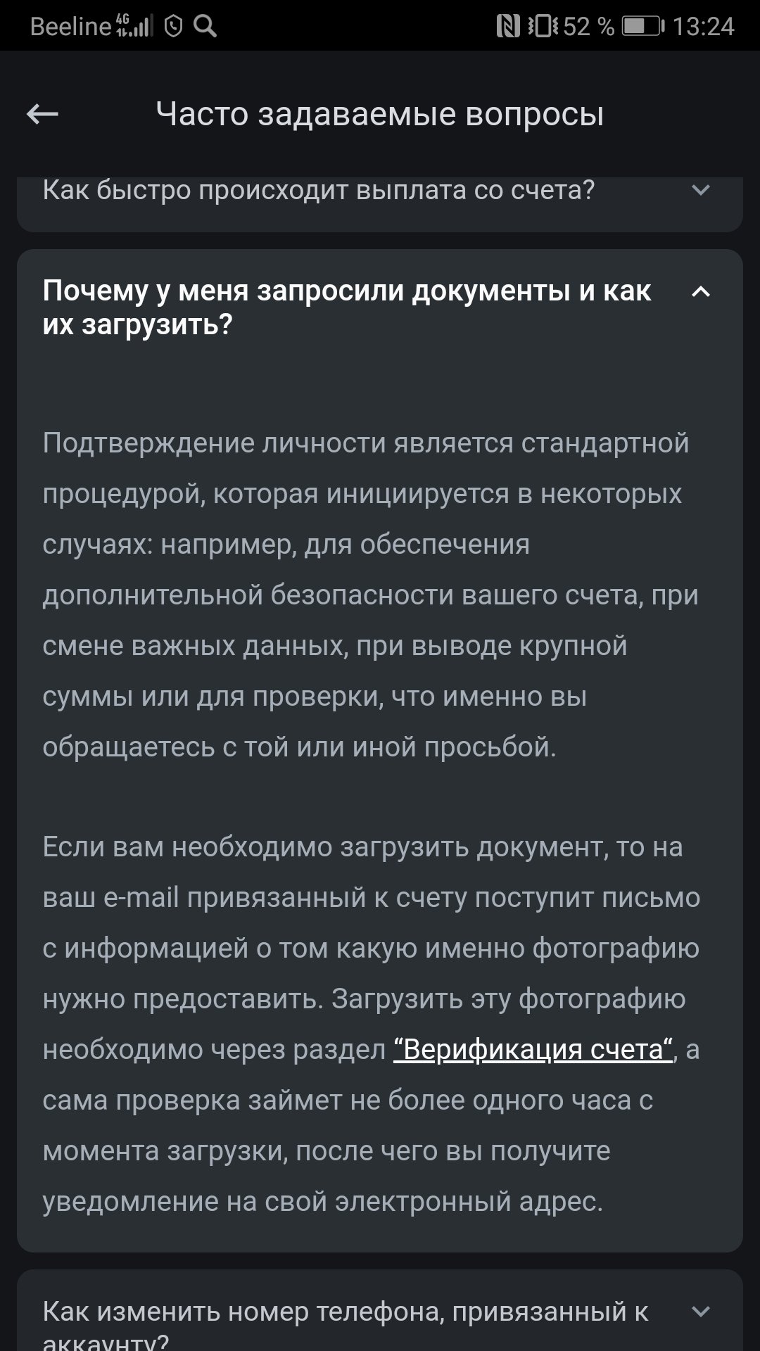 взял фрибет на 500 рублей, отыграл его по правилам, в итоге вывод составляет 2125, не выводили 3 часа, пришло уведомление о подтверждении ИНН, чтобы я скинул документ (учитывайте, у меня подтвержденный киви, идентифицированный цупис с 2020 года и не одной такой ситуации не было), самое главное, зачем инн, не суть, написанно проверка не более часа, уже 2 день прошел, ответа нет, уведомлений нет, почта пустая, пропал онлайн чат поддержки, номер БК не работает, классно!