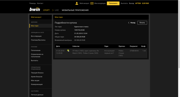 Сделал ставку 31 мая на теннис и после расчета ставки счет сразу заблокировали и не дают вывести денежные средства. Тех поддержка отвечает: Как было отмечено в предыдущих письмах, согласно информации, полученной из соответствующего отдела, Ваш аккаунт был заблокирован за подозрительные действия. В настоящий момент он находится на рассмотрении. Как только будет получена какая-либо новая информация по данному вопросу, мы сообщим Вам об этом по e-mail. Прошло уже 5 месяцев, но мой счет так же заблокирован и не дают вывести денежные средства. Скриншот моей ставки прикрепляю