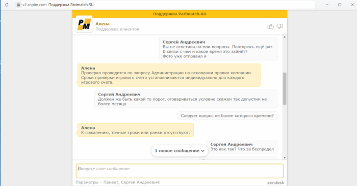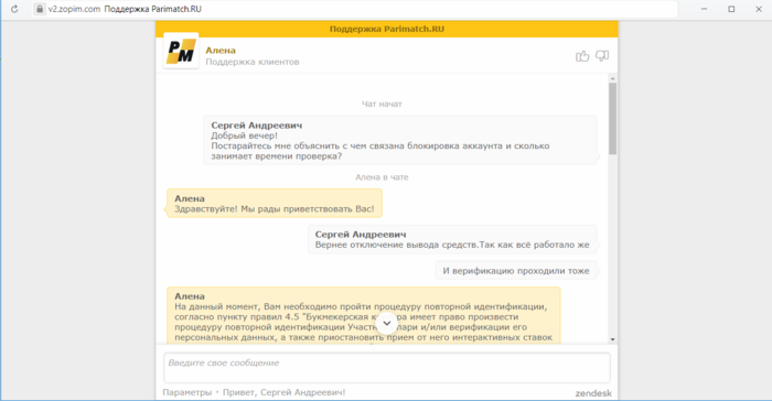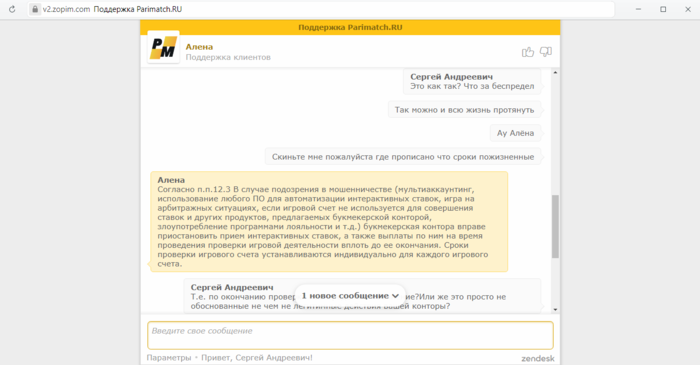 Добрый час! Увлёкся я ставками и выбрал пари матч.Работал только с ними и на одном аккаунте. Сделал порядка 120 ставок. Всяко бывало, выигрывал/проигрывал так же без проблем выводил/заводил. На днях поднял сумму по больше, и вдруг увидел вот такое вот сообщение: "Выплата денег с этого игрового счета временно не производится. Для разъяснения обратитесь в администрацию букмекерской конторы по адресу " Надеюсь на скорейшее выздоровление моего счёта, так как играю часто и в принципе данная контора меня устраивает во всём. Но такого ножа в спину конечно не ожидал! Надеюсь что это по ошибке. Разблокируйте!Не портите себе репутацию ребят. Игровой счет: 2145150 На всякий случай всё заскринил. Всем добра!