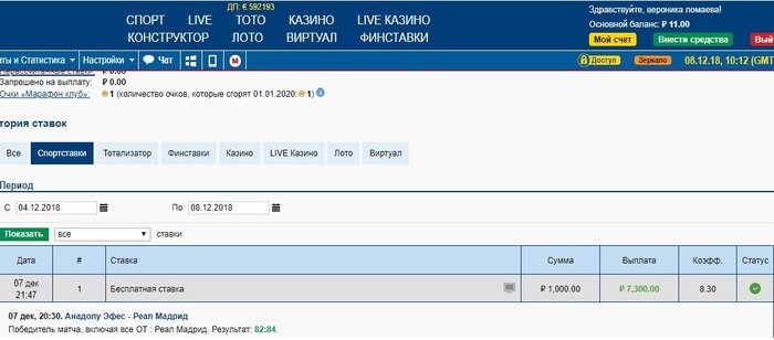 Добрый вечер, 30 ноября была сделана ставка на матч спартак - рапид, я взяла победу рапид за 21, выиграла 10000, для того , что бы вывести средства пополнила счет на 500 рублей, меня сразу заблокировали, в службу поджержки звонила двое суток, отвечали грубо, бросали трубки, кормили ожиданиями, потом все таки разблокировали на счету было 10500 , я сделала ставку на 500 и проиграла, а остальные 10 поставила на вывод, потом через два дня я захожу у меня баланс ноль рублей, позвонила в службу поддержки сказали вас подозревают в мошенничестве, ну это бред полнейший , я предоставила свои документы, я в спорте не разбираюсь, впервые попробовала сделать ставку.