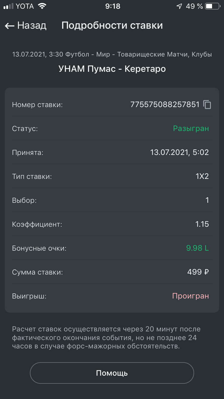 Некорректно принятое или рассчитанное пари