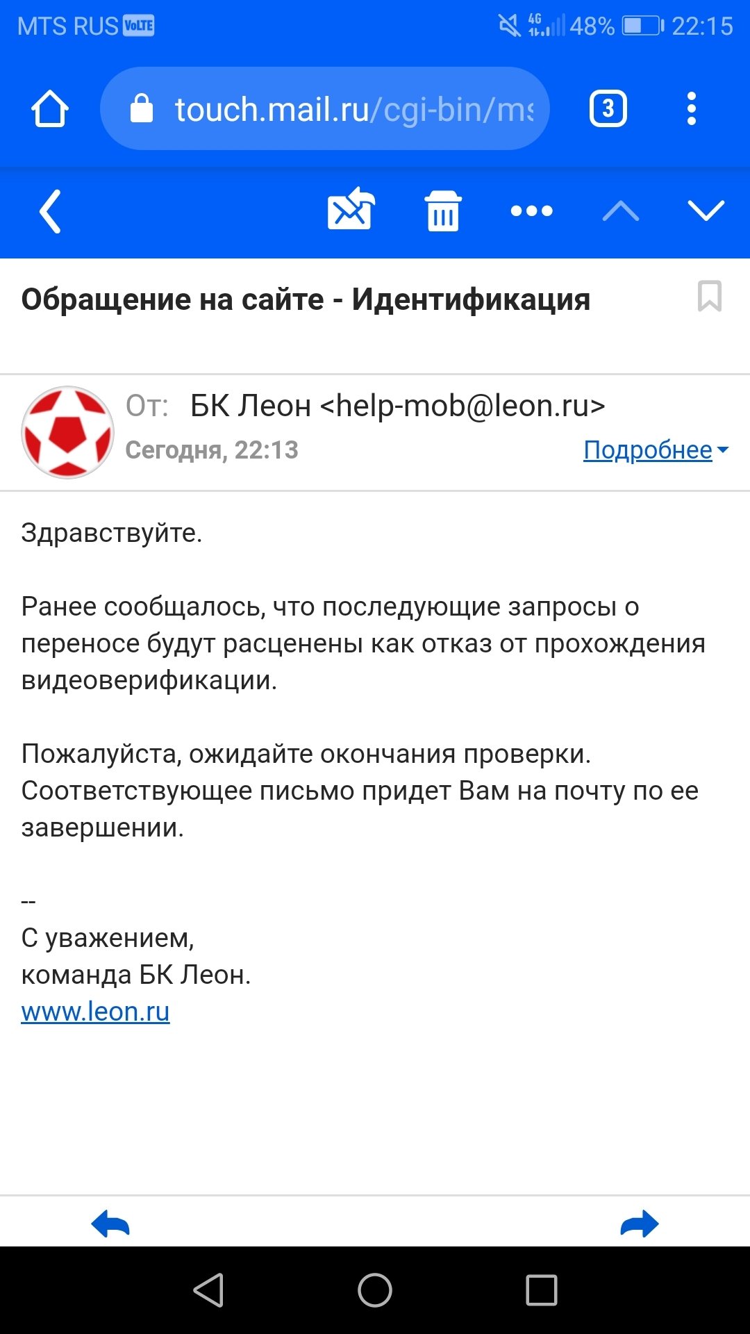 Леон не выплачивает деньги. Здравствуйте. Я зарегистрирована в бк леон ру. На протяжении не малого времени делала там ставки самостоятельно, проиграв не мало денег. Когда я заводила туда свои деньги им не нужны были никакие документы и фото.. Но как дело доходит до выплат так начинаются проблемы, нужны куча всяких документов, фотографий. Ок без проблем я все предоставила.. Но тут начинается самое интересное, они заблокировали мне аккаунт типо на 30 дней.. На каком вообще основании? Может я рассчитывала на эти деньги, может у меня не получится в связи с работой или отпуском постоянно на протяжении этих дней ждать от них письма,, с моря погоды,,. В общем с ними все понятно, это машенники, они этим самым и живут обманывая людей не выплачивая им деньги ищя разные нарушения. Задумайтесь прежде чем заводить в эту бк свои деньги!!! Номер счета 64915573