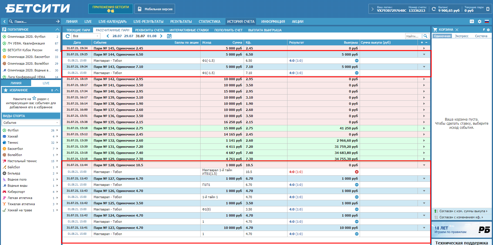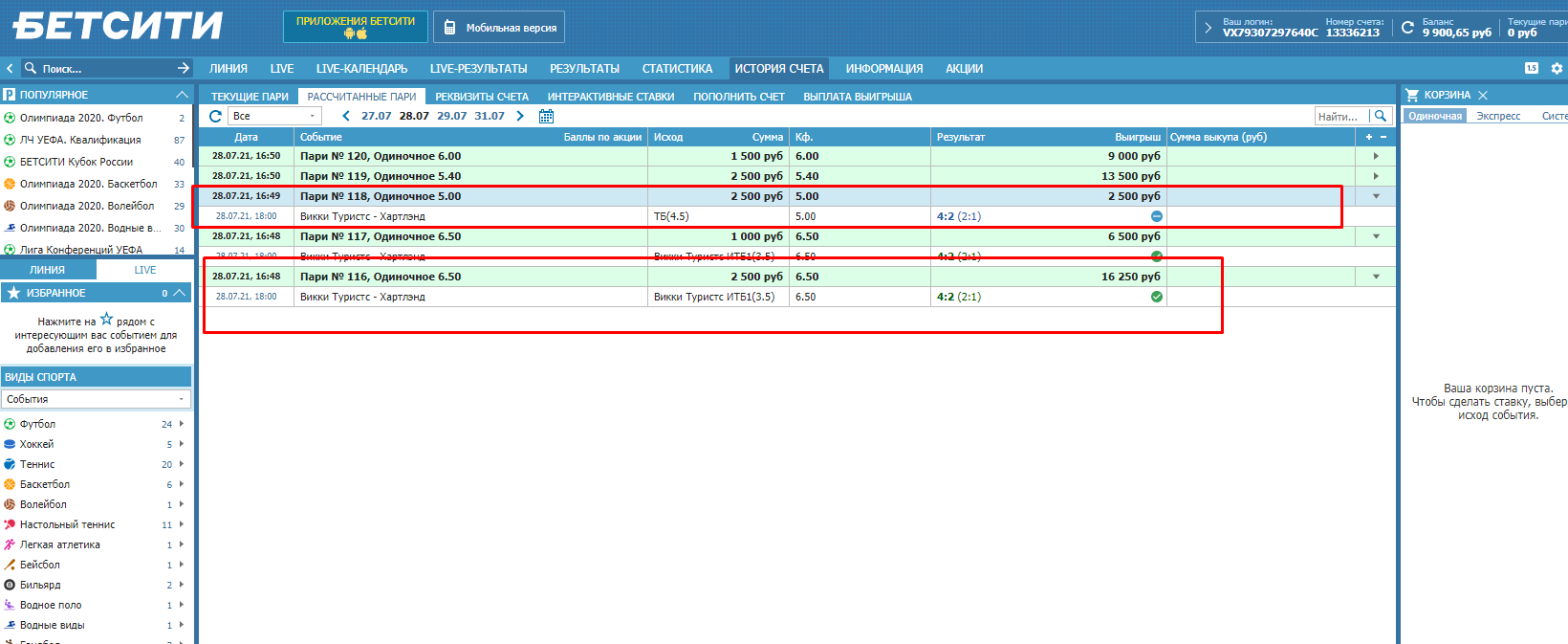 Сейчас получилось зайти в аккаунт,после 2 дней блока,и что я увидел...мои ставки которые ранее были рассчиты выигрышем.теперь рассчитаны с коэффициентом 1,что говорит о мошенничестве со стороны компании...потому что они просто решили решили меня обнулить...причем не только данные ставки были рассчитаны с коэф.1,были еще ставки....ПРОШУ обратить особое внимание на ставку под номером 128,она рассчитана по факту проигрышем...а ставка с того же матча что и все те где мне дали кэф 1...ЧТО говорит о мошенничестве...скрин прилагаю...прошу разобраться в данной ситцуации ...по другому как мошенничество я назвать данные действия не могу...2 дня меня не пускали в аккаунт что бы вы борочно пустить ставки с кеф.1 И ТО ВЫБОРОЧНО....ЭТО МОШЕННИКИ...прошу разобраться с данной команией