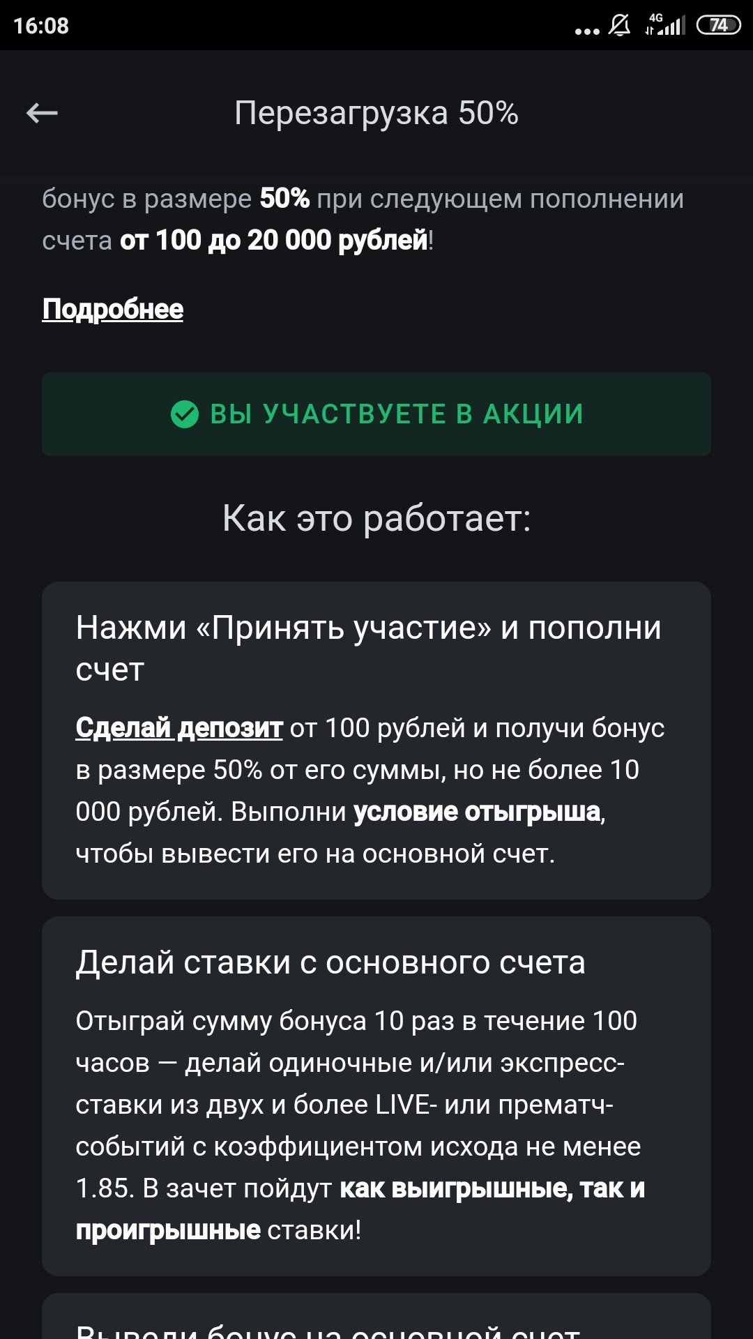 Здравствуйте, делал ставки и все было нормально, но после того, как сделал несколько выводов денег подряд мне снизили лимиты до минимума, я об этом узнал уже после того, как принял участие в акции и теперь я не могу эту акцию сыграть из-за установленных лимитов. Лимиты от 50-200 р, а ставок нужно сделать на сумму более 100 000. Обращался в службу поддержки, но мне отказали, возможно с Вашей помощью что-то получится изменить.
