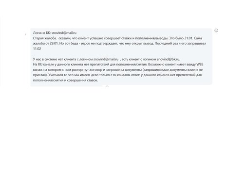 Есть информация от букмекера с датами и цифрами, опровергающая жалобу игрока. На запрошенные скрины о не получении денег от игрока ответа нет