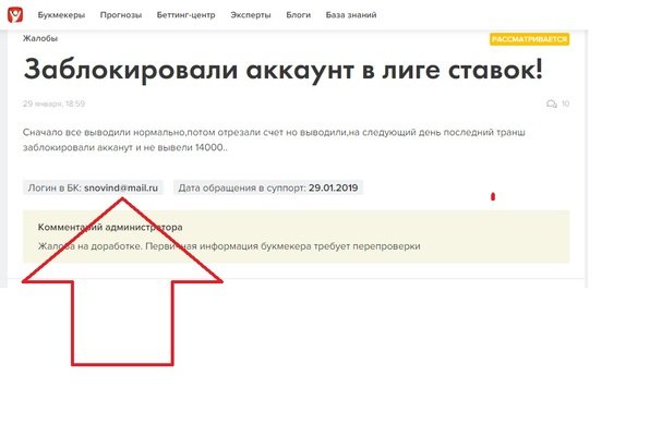 2. Обратите внимание на то, что написано в заголовке "Заблокировали аккаунт в лиге ставок"