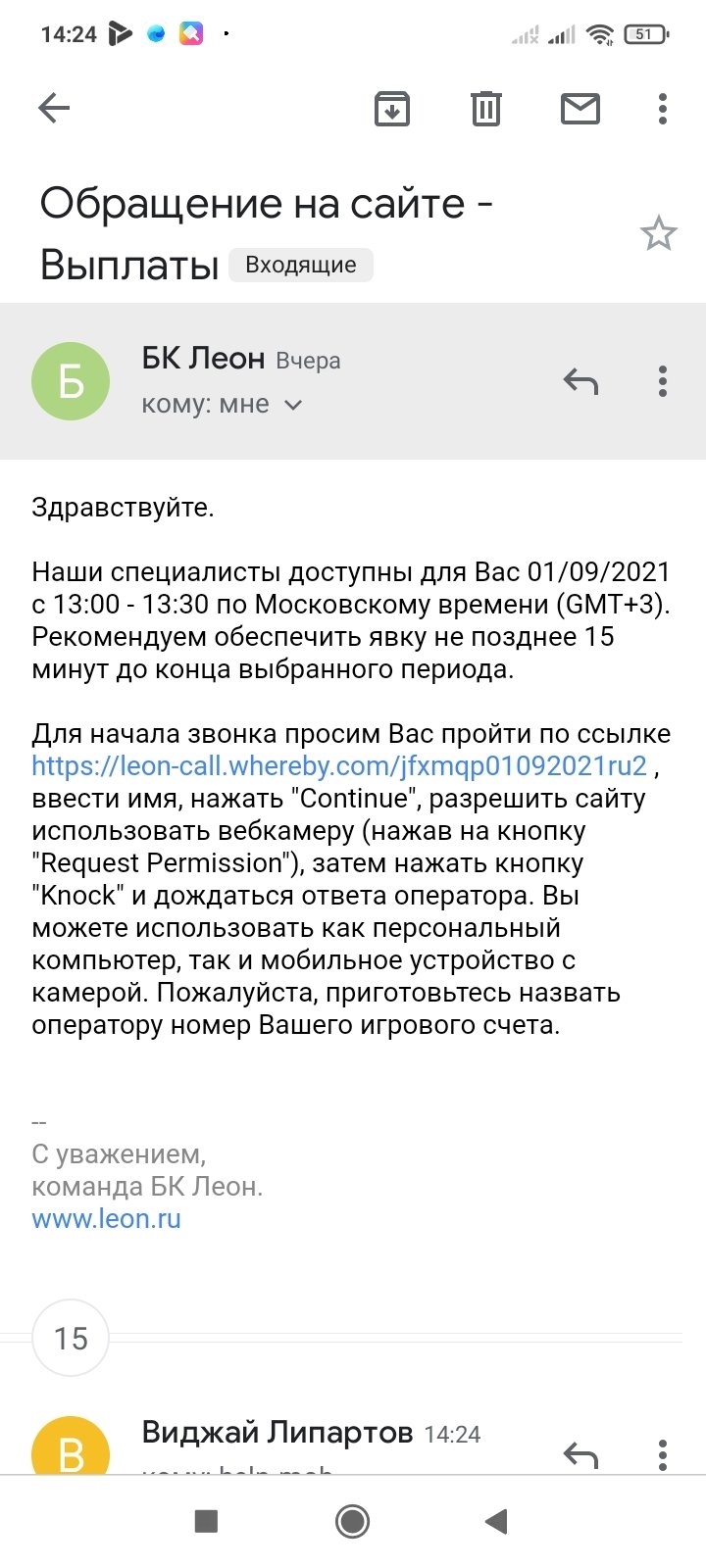 Добрый вечер. Короче ситуация такая что бк Леон ру заблокировала мой счёт с суммой 906 тыс 862 руб. Пишу подробно, играю давно в этой конторе и не сталкивался с проблемой пока не выйграл крупную сумму. Ставил на чемпионате Европы. Одна ставка прошла, выйграл 50 тыс. Потом еще поставил тоже выйграл. Уже на счету у меня было 900 тыс. Начал выводить, не получилось. Попросили пройти идентификацию. Запросили все документы что у меня есть. Я все отправил. ( отправил все документы) написали что документы успешно расмотренны и что мой счёт проходит стандартную проверку в отделе безопасности. Я не могу понять если есть отдел безопасность то что за детский сад с проверками. Достаточно паспорт гражданина РФ и все данные можно пробить. Что за контора которая без причин и без каких либо оснований блокируют счета. Не только у меня почти всех. Кто им такое права дал. Пусть работают по закону РФ. Пусть не мучают с задержкой денег. Че самые умные что ли они. Я пишу вам разберитесь, выясните почему они так поступают. И пусть в правилах пишут что у них очень тяжело деньги выводить, что ты люди знали. Чем какие то бонусы давать при первой регистрации. Номер счета 64705782