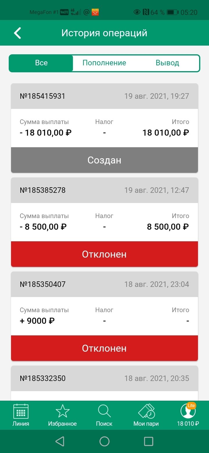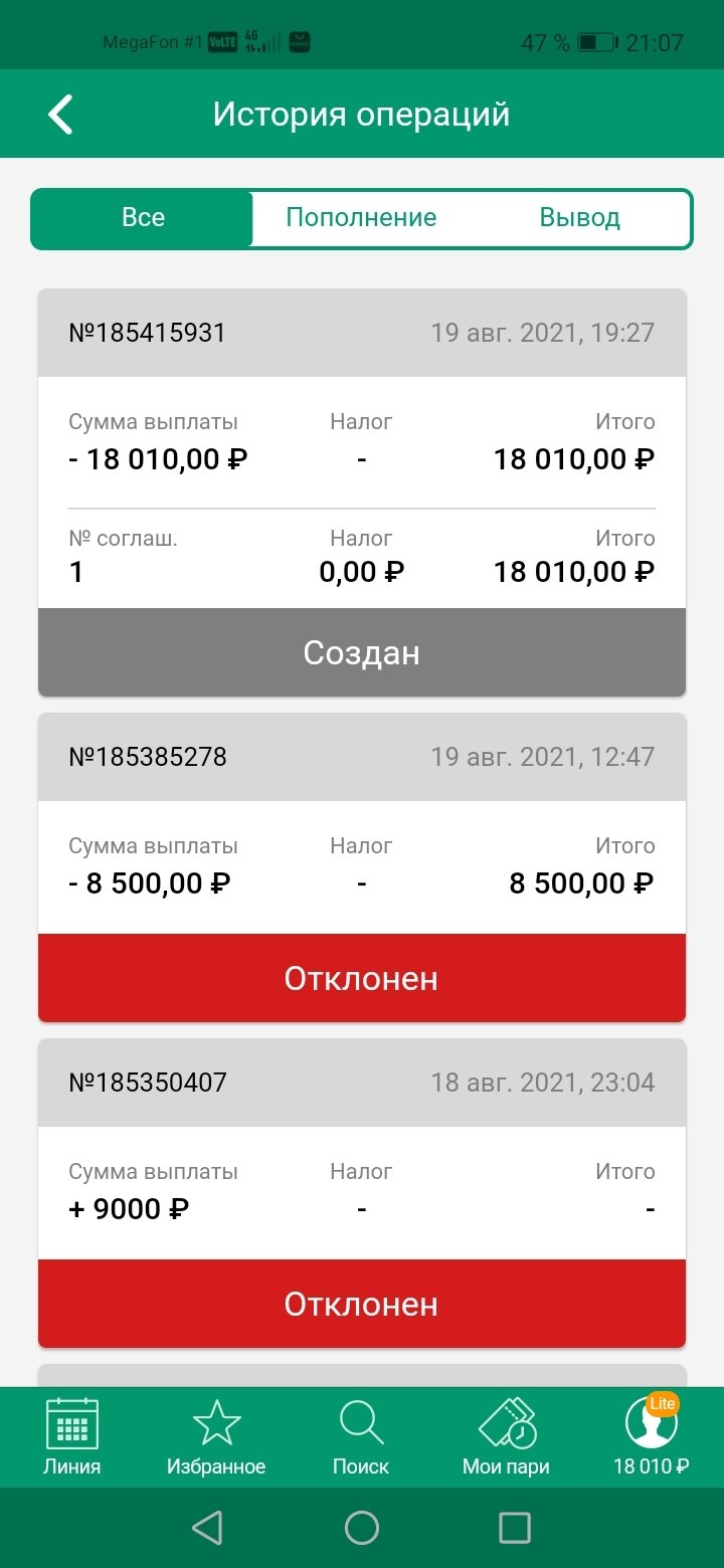 Это означает, что заявка ожидает рассмотрения финансовой службой Компании БК «Лига Ставок» - в данном статусе заявка может находиться от 15 минут до 24-х часов.