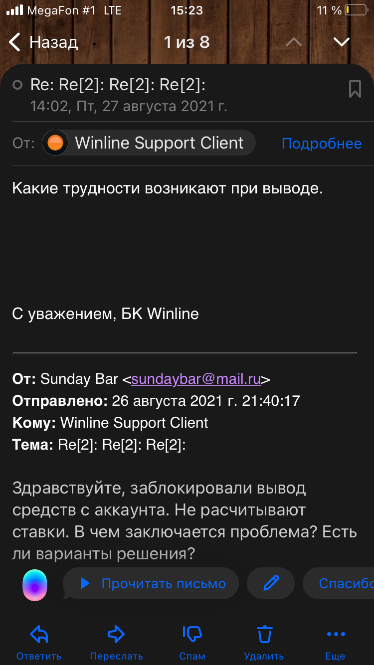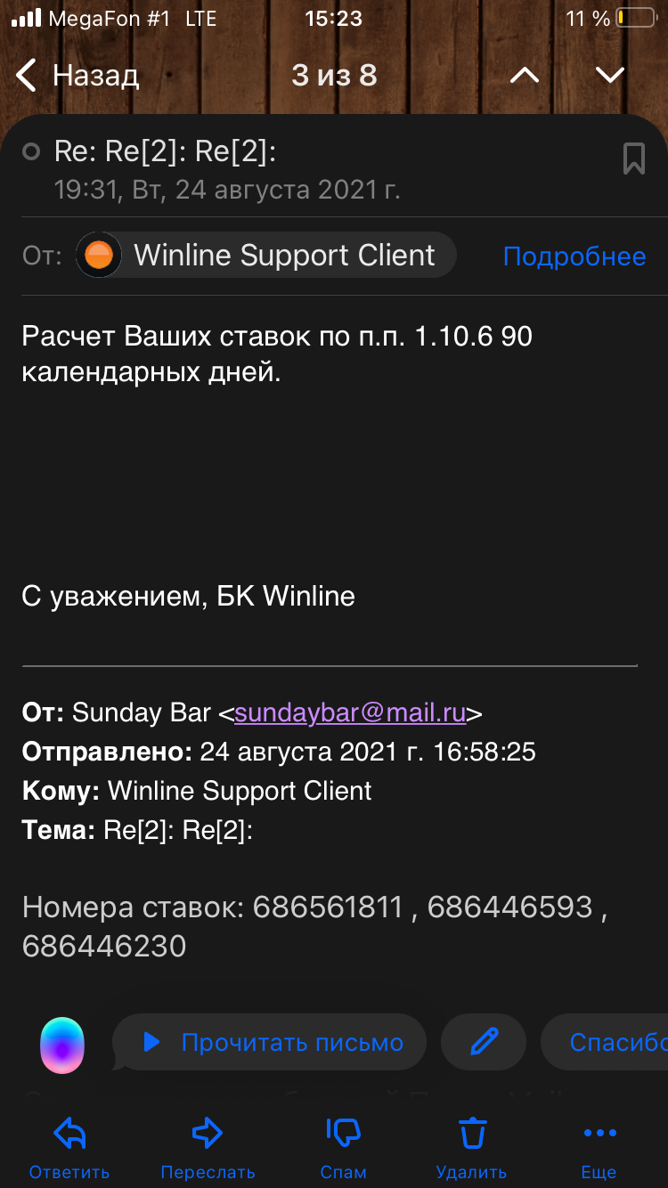без объявления войны, заморозили последние сделанные ставки. Поддержка объяснила все очень просто « согласно пункту правил до 90 дней». На сегодняшний момент вывести остаток средств не получается, ставки не расчитывают. Поддержка игнорирует или хамит. Абсолютно не ожидал от Winline.