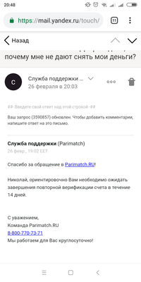 Верификация стандартная процедура для БК. Правилами компании регламентировано, что в её ходе может появится потребность в предоставлении дополнительных данных. Сроки верификации индивидуальны именно потому, что в ходе проверки могут понадобиться различные дополнительные данные и для их проверки нужно время. Рекомендуем Вам ожидать ответ на почту
