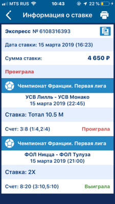 Добрый день. 1Хставка не верно рассчитал удары в створ ворот в матче Лилль - Монако. Номер счета: 83842345 Номер купона: 6108293275 Согласно официальному источнику, который указан в 1ХСтавке в матче было нанесено 10 ударов в створ ворот (3-7). По ходу лайв трансляции в 1хСТАВКЕ было указано 4 удара в створ ворот (1-3), как и в официальном источнике. Но 1ХСтавке видимо решили схитрить и взяли информацию с майскора, который не является официальным источником) Прошу решить данную проблему.