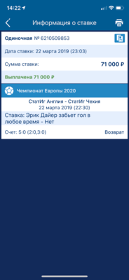 Я понимаю,что такое послегол и недавно сделал 2 таких ставки,когда было заметно например что кузяева и Дайера скоро заменят и он не забьют,и такая возможность была,и мне сделали возврат выиграша,это справедливо,но с карточкой такое просто не возможно. Там я поставил 45000 и 71000 а тут всего 1298 рублей и просто угадал. Букмекер теперь думает,что я так играю и жду возможности их обмануть постоянно,но это не так. Я сделал такие ставки потому что видно был что скоро может быть замена игрока и он не забьёт,сделали возврат ладно,но с карточкой это просто удача.