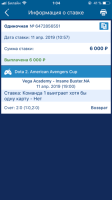 Добрый день. мной была сделана ставка на матч Vega Academy - Insane | 19:00, Купон №6472856551. Во время игры техническое поражение получила Vega Academy, потом при разборе игры судьями сняли конкурентов за нарушение. Фактически во время игры не было сыграно ни одной карты. После окончания игры ставку долго не рассчитывали. я первый раз обратился в техподдержку БК, где мне ответили, что если данная игра не будет переиграна "то ставка именно на этот матч будет рассчитана возвратом". Через несколько часов ставку рассчитали как проигрыш и дальнейшее обсуждение предложили проводить через электронную почту. Было составлено обоснованное обращение подкрепленное данными с официальных источников, на что был получен ответ: "Игра была начала, а потом они сдались, игра считается состоявшейся." Источник получения данной информации специалисты БК мне так и не раскрыли, на все запросы мною получены формальные некорректные ответы. Скриншоты переписки во вложении (при необходимости вышлю всю переписку, ограничение в 3 фотографии не дает добавить). Просьба помочь разобраться в данной ситуации. P.S. Проанализировав результат расчета по данному событию в других БК, я пришел к выводу что БК пришли к решению считать данное событие несостоявшимся и оформили возврат ставок по всем вариантам событий.