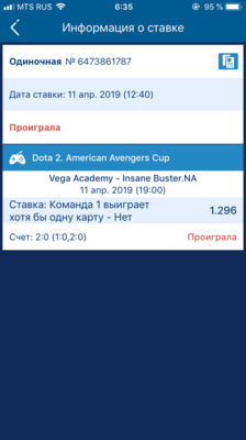 Доброго времени суток. У меня проблема, как и у одного из ваших посетителей с матчем Vega Academy - Insane | 19:00. Вот номера моих купонов: 1. 6473824247 2. 6473848007 3. 6473833063 4. 6473838157 5. 6474030265 6. 6474026211 7. 6473829109 8. 6473855721 9. 6473817163 10. 6473852485 11. 6473877005 12. 6474041443 13. 6473861787