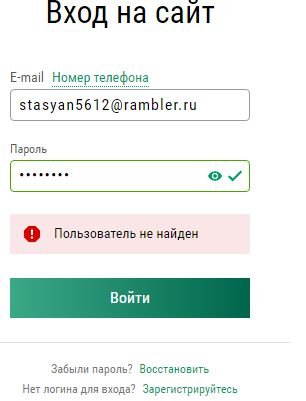 Пользователь не найден при входе в БК