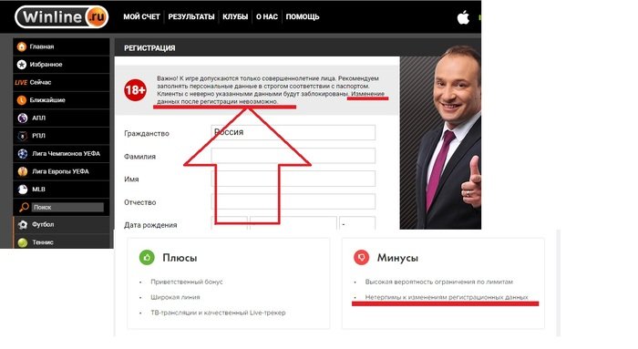 Букмекер в форме регистрации делает предупреждение. Также отметим, что данный нюанс отражен в обзоре сайта. Со стороны арбитража Легалбет БК Винлайн сделаны рекомендации по исключению подобных инцидентов.