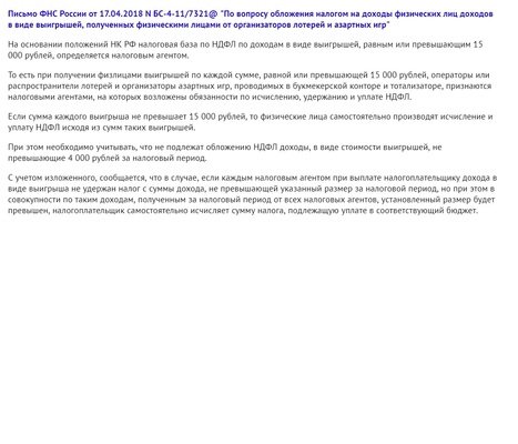 НО, во-первых, требование в этом пункте, явно,находится вне зоны их компетенции. Они не являются налоговым агентом, о чём и сообщают на сайте игрокам. Т.е. вопросы уплаты налогов их не касается совсем. Поэтому, и требовать, смотреть, сохранять в своей базе личные сведения по налоговой информации физ лица они не имеют право.