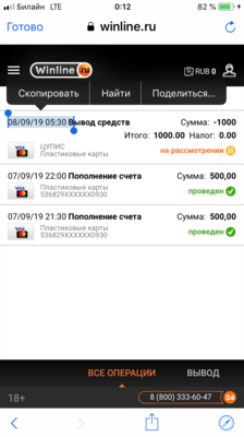 Арбитраж Легалбет получил информацию от БК Винлайн, что заявка на выплату денег выполнена 10/09/2019 в 09:20. При этом отметим, что выплата осуществлена с задержкой, не превышающей оговоренные сроки Правилами работы букмекера. Одновременно подчеркнем, что ситуация не типовая, задержка имела объективные причины.