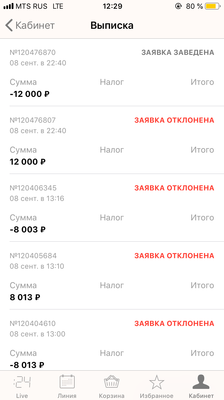 Арбитраж Легалбет получил информацию от БК Лига ставок. Заявки были отклонены с комментарием "Недостаточно средств". Пока заявки находятся на рассмотрении, средства остаются на балансе и доступны для совершения пари, в случае если сумма на балансе будет меньше, чем заявлена в заявке на выплату, то запрос будет отклонен с комментарием "Недостаточно средств". С 09.09 клиент пополнял баланс и выводил средства.