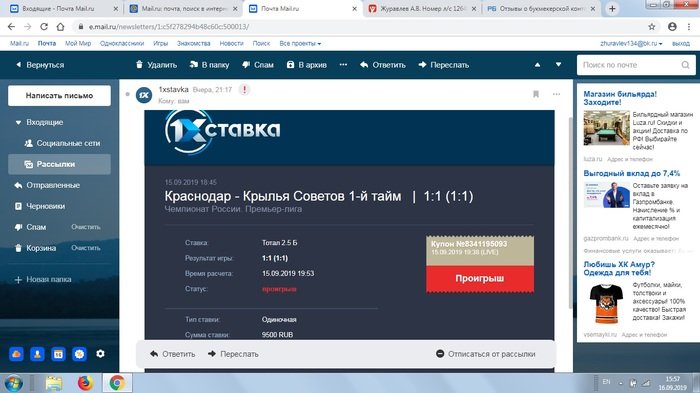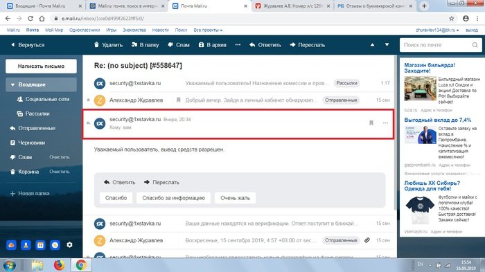 2. Необходим скриншот письма, где будет видно во сколько пришло письмо.