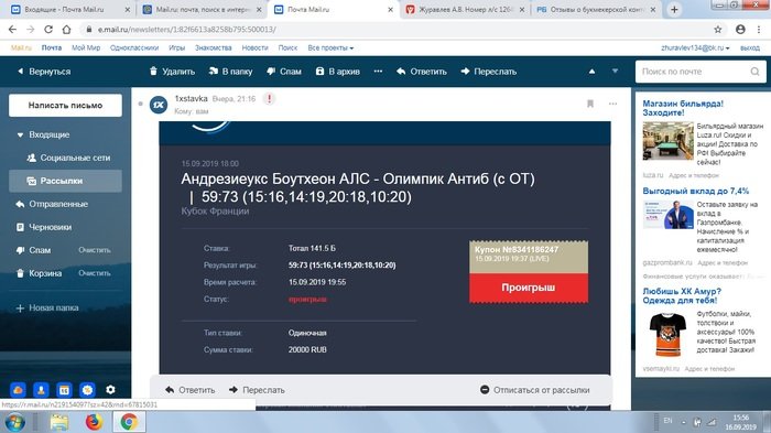 Хочу рассказать о печальном опыте работы с 1хставка. После нескольких выиграных ставок попытался вывести деньги со счета. На что в ответ были запрошены фото документов для доп. верификации. Спустя неделю усиленной верификации я получил письмо на э/п с новостью о том, что вывод средств разрешен. На момент получения письма личный кабинет был открыт в браузере. После обновления страницы я обнаружил отсутствие денег на счете. При проверке истории ставок я обнаружил две проигранные ставки на сумму депозита. Данные ставки я не совершал. Доступ к личному кабинету имею только я.
