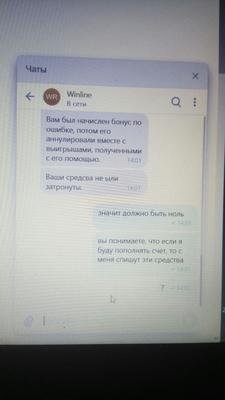 Сообщили, что у меня есть фрибет. Я сделал ставку и выиграл 325 руб. Сделал еще одну ставку и они аннулировали ее. На счету -325 руб. Жаль у Вас только 3 фото можно прикрепить, я бы всю переписку предоставил. Попросил списать этот минус, так как он не по моей вине произошел. Теперь я должен данной конторе деньги :) С ничего да ? ) Я в жизни такого не встречал. Цупис отказывается отвязывать от личного кабинета данную организацию. Вот так зарабатывает контора винлайн. Собираю все жалобы и похожие случаи - будем писать коллективное заявление на лишение лицензии и возбуждении уголовного дела -мошенничество. На сообщения в чате больше не отвечают. Общался я с ними корректно, без негатива. Вы представляете сколько людей могло так вот уйти в минус ? Нашел "тонну" отзывов.