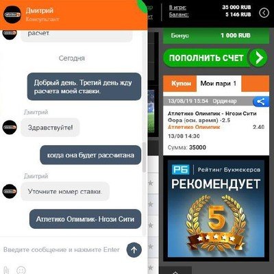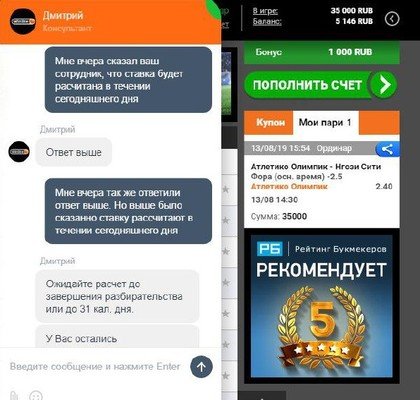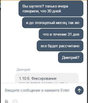 Добрый вечер. Зарегистрировался, начал делать ставки. Ставка зашла, рассчитали, через часик примерно поставил на вывод, уехал на некоторое время. Через пару часов возвращаюсь. заявки не рассчитали, а баланс стал отрицательным. Смотрю, ставка висит не рассчитаннная, хотя я больше не делал ставок. Смотрю, а эта та самая, которая зашла и которая пару часов назад была рассчитана. Далее писал в поддержку, около недели кормили завтраками, мол вот вот, пару дней, идет разбирательство, после чего просто сказали, что ставка будет рассчитана через 3 месяца.Ну или в течение 3 месяцев, два уже прошло. И честно говоря, очень жалею, что сделал эту гребанную ставку. 3 месяца, Карл! Да я бы лучше другу под % дал, чем ставки делать. надеюсьпоможете. Во вложениях не смог приложить все 12 скринов, но их там было много.