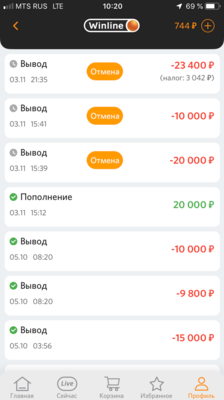 На счету букмекера 63000 руб, выплаты не производятся. Все выплаты висят в обработке. Звоню в поддержку, говорят "Ознакомьтесь пожалуйста с пунктом ". Порезали максимум сначала до 100 руб, ссылаясь "1.9.5. Комментарии и разъяснения по этим моментам администрацией не предоставляется. Еще ограничили вывод средств через ЦУПИС. Объяснений никаких не дали на контакт не идут, ссылаются ссылками на свод своих правил.
