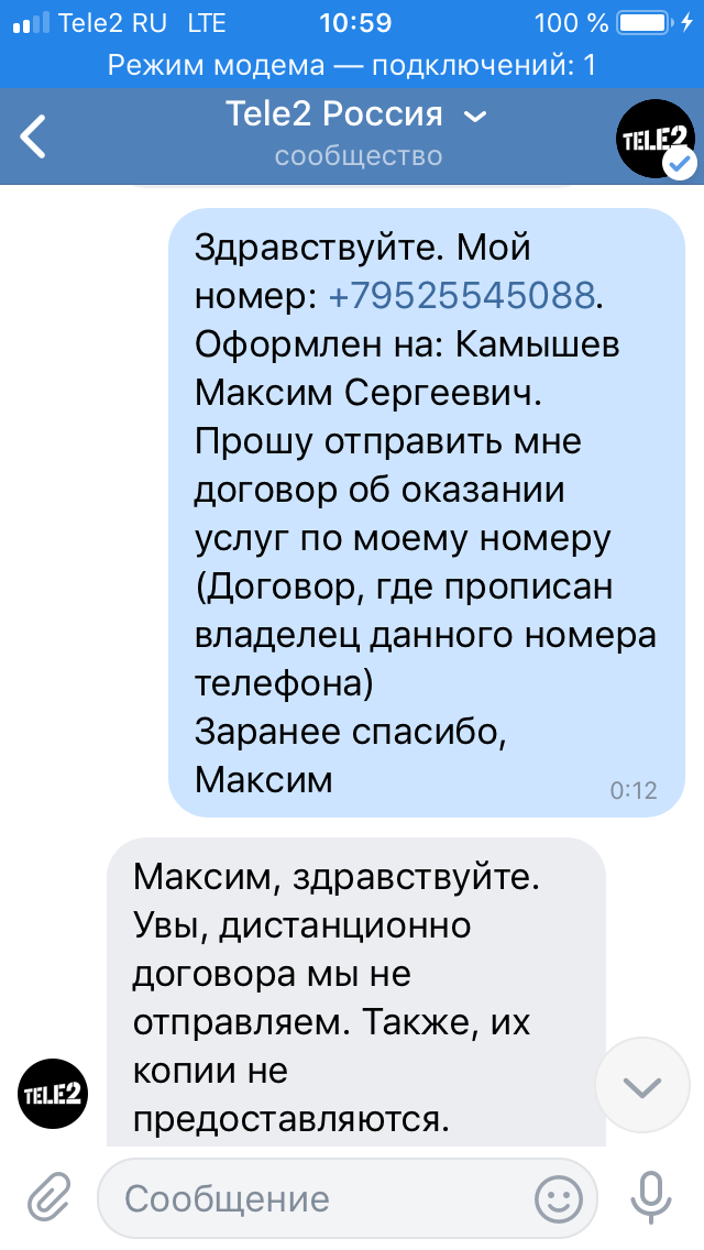 Здравствуйте! Букмекерская контора отказывает мне в выплате средств, требуя отправить им фото договора сотового оператора на номер к которому, привязан qiwi кошелёк. Я обратился в салон сотового оператора, где мне сообщили, что они не имею права выдавать подобные договора (оператор: теле2). Соответсвенно предоставить букмекеру запрашиваемый договор, я не могу. Пожалуйста, смотрите скриншоты переписки с бк во вложениях. Заранее спасибо за помощь!