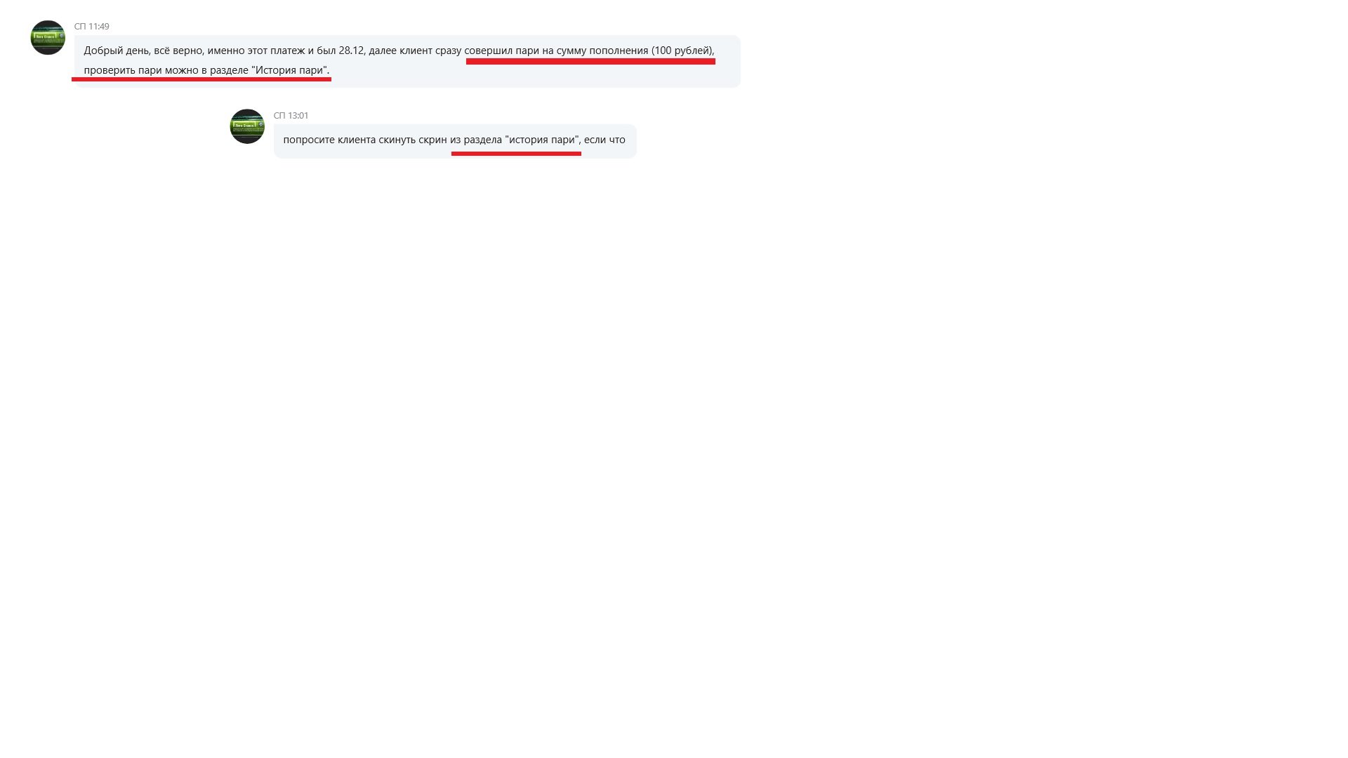 Арбитраж Легалбет получил отказ от представителя БК в номере пари. Которое могла снять проблематику в жалобе. При этом утверждать, что есть реальная вина БК оснований нет. Но и опровергнуть автора жалобы без номера пари нет возможности. .Статус - Не решено