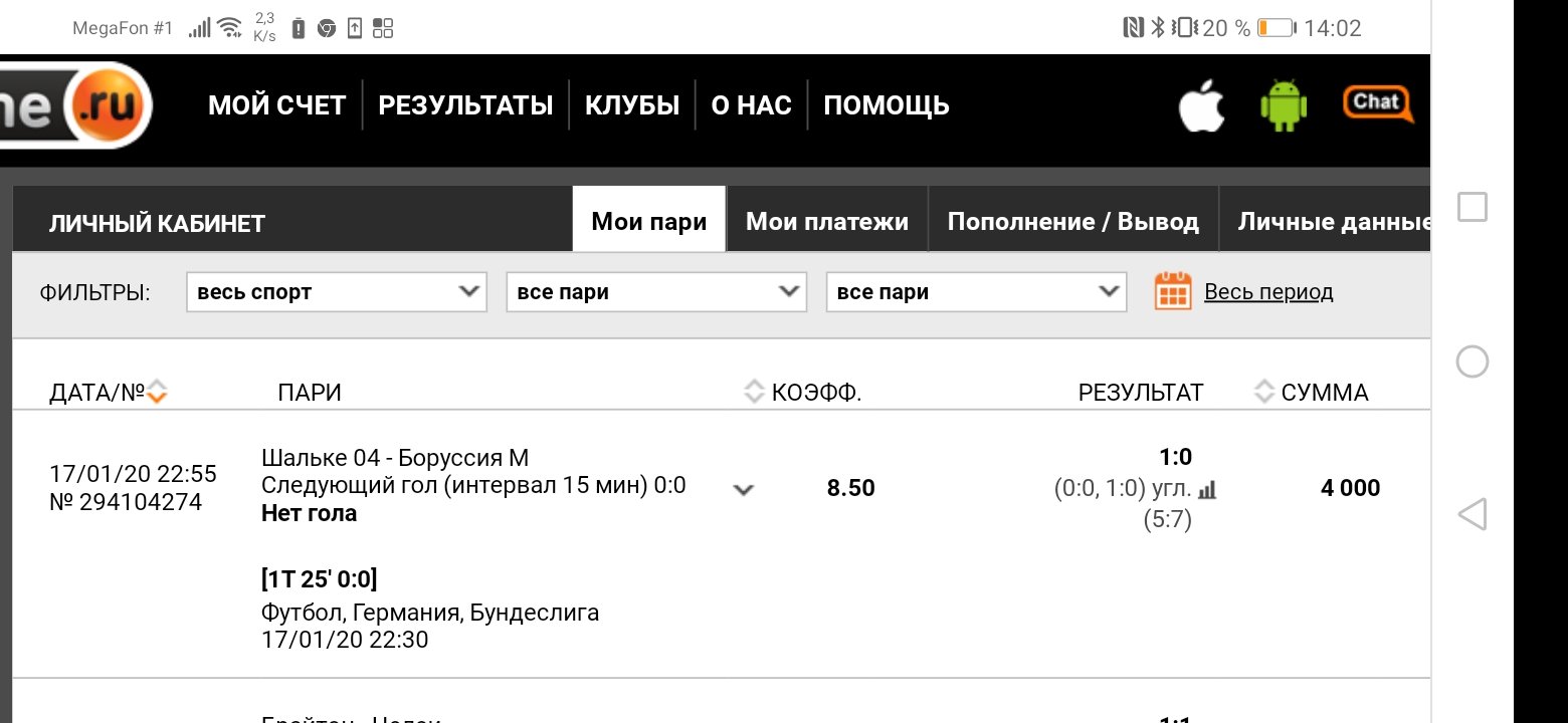 Добрый день! Ставка 294104274 интерпритируется букмекером, как не будет гола в игре вообще. Я же ставку делал, что не будет гола в следующие 15 минут матча, Причём когда я позвонилв Винлайн и задал вопрос, почему не сыграла ставка-там мне сказали, цитирую: Вы поставили ставку, что в слудующие 15 минут гола не будет, поставили на 25 минуте и проиграли!!! Тогда я им говорю, почему же я проиграл, ведь гол забили во втором тайме, через 22 минуты. Они попросили подождать на линии, ждал около минуты, потом тот же менеджер сказал, что ВСЕ верно-вы проиграли, ваша ставка на то, что гола не будет вообще в игре. Ощущаю себя дебилом после этого)))