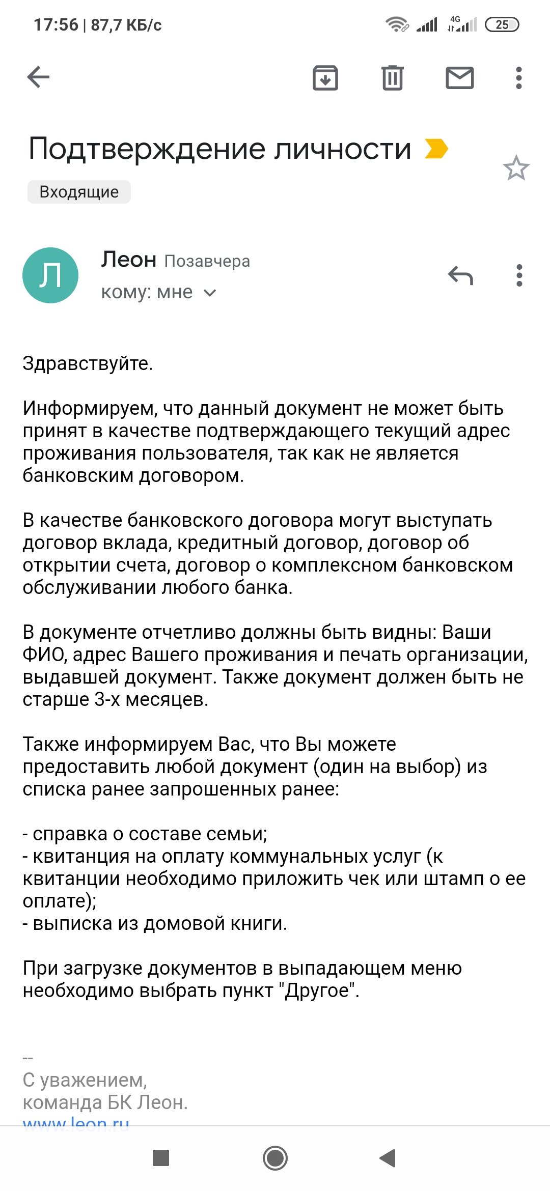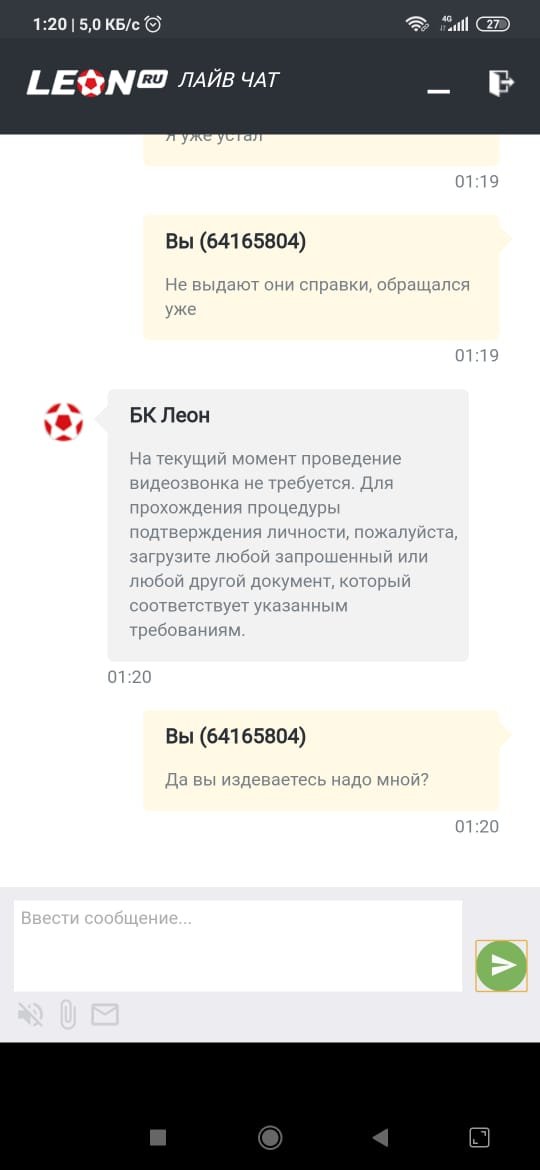 P.S: Смешной момент. В Леоне сами знают, что аккаунт мой, но не отдают деньги для моей безопасности. Это очень смешно) С этим можно ознакомиться в прикрепленном скриншоте. Таких противоречивых утверждений еще маленькая тележка есть.