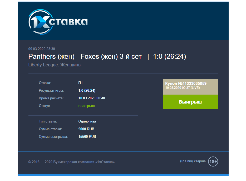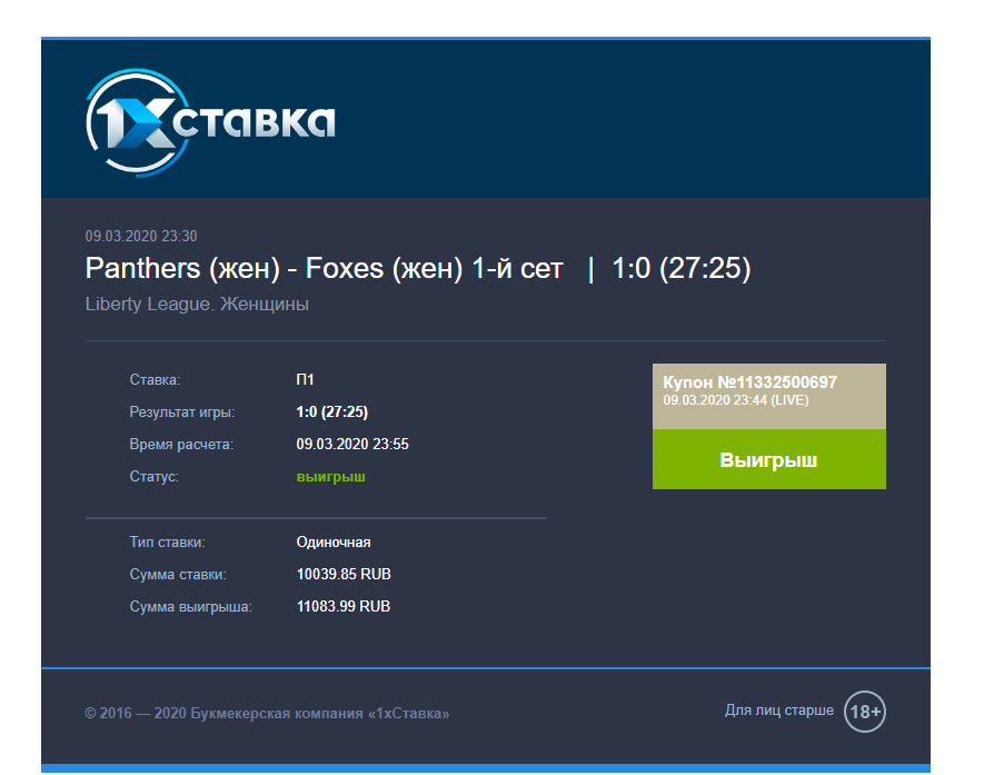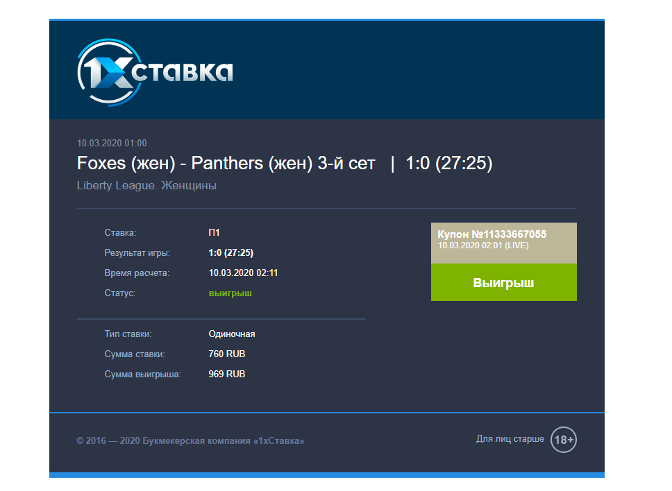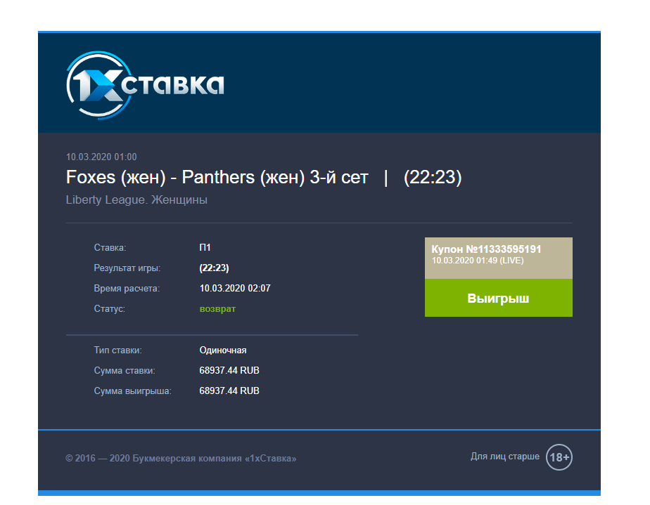Ставил ставки на волейбол, все ставки выиграли, деньги были на балансе, дальше я поставил ставку 68000 и 760 рублей на одно и тоже событие и один и тот же исход, ставка заходит, они выплачивают мне выигрыш за 760р, а выигрыш с 68000 просто сделали возврат, так же сделали возврат всех предыдущих моих ставок, тоесть просто сняли у меня с баланса выигрыши и оставили мне ту сумму, которую я пополнял и выигрыш с 760р.