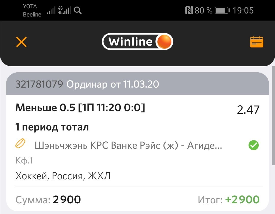 Здравствуйте. Довольно часто делаю ставки на тотал в хоккее, как правило делал ставки на тотал больше в периоде или индивидуальный тотал определенной команды. в очередной раз сделал ставку на тотал 0,5 меньше в первом периоде,ставка выиграла,однако бк winline сделала по ней возврат. Поддержка ответила что был неправильно рассчитан кф. Довольно смешное оправдание, я делал сотни ставок в бк winline на тотал хоккея. наблюдал за данным событием и движение коэффициента и его расчет абсолютно стандартный для данного поединка. поведение коэффициента во время матча так же абсолютно объективно и стандартно. Да я нечего не потерял, но крайне обидно!!! Сотни ставок у меня не зашли и ни по одной нет возврата, а тут ставка выиграла и по ней возврат. Впечатление о том что это крайне надежный букмекер исчезло вместе с возвратом ставки. А рекламный лозунг "винлайн заплатит" не более чем блеф. Данному букмекеру более подойдет "винлайн вернет" номер аккаунта 7932864 номер купона 321781079 от г. ставка 2900. на самом деле у меня возникает только одна мысль, кто то взял и поставил крупную сумму денег на данный матч, тотал меньше в первом периоде, (прошлый матч эти команды сыграли аналогично) ставка сыграла и чтобы не платить по ней выигрыш винлайн просто отобрала его у всех кто ставил на данное событие и придумали отговорку. Забавно получается,инструмент дейсвует только в одну сторону. покажите хоть одного человека у кого проиграла ставка и ему сделали возврат из за якобы "неправильного расчета", хотя если взять в пример аналогичные предыдущие событие то движение кфов будет практически идентичным лишь с небольшой погрешностью сказанных объективными факторами оказывающие влияние на движение кф в лайв режиме,будь то удаление или крупная сумма ставки сделанная кем то и тд. Если в двух словах. бк winline не оправдывает репутации надежного букмекера, у меня просто отобрали выигрыш. Абсолютно убежден,если бы ставка не сыграла, никто бы не сделал перерасчет с кф 1. Эмоциям нет предела,сотни ставок не сыграли и по ним нет возврата,а по сыгравшей возврат. Молодцы вины! путь к признанию рунета худшим букмекером проложен верно.