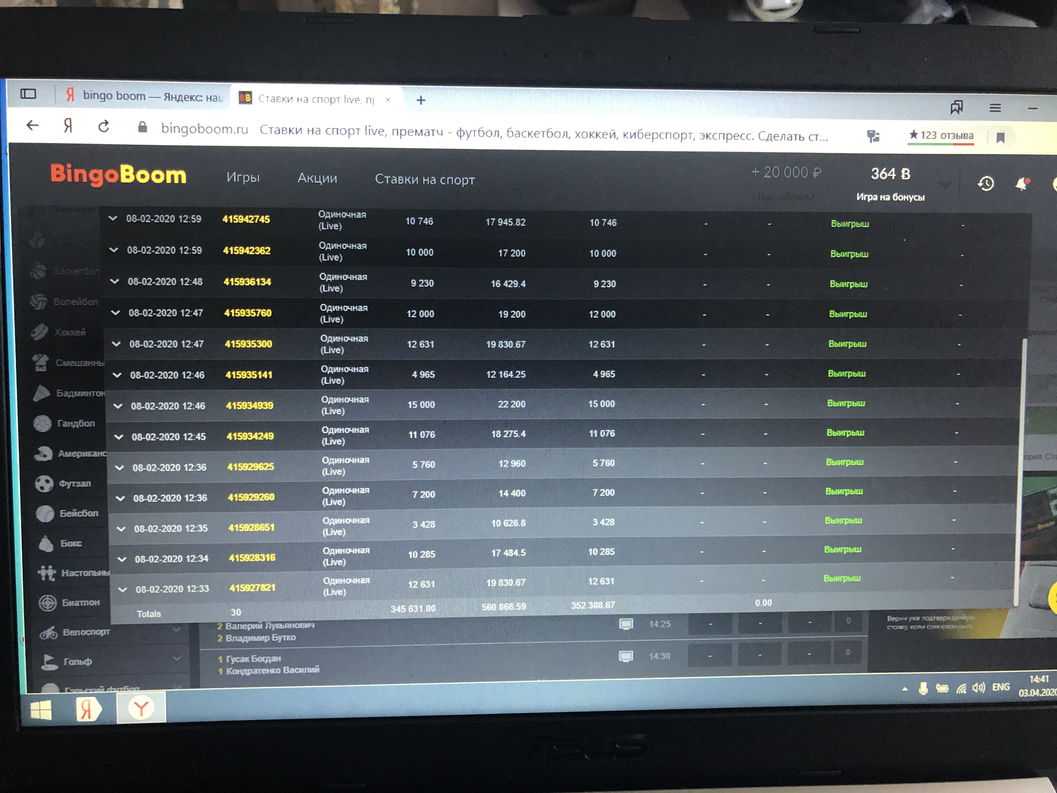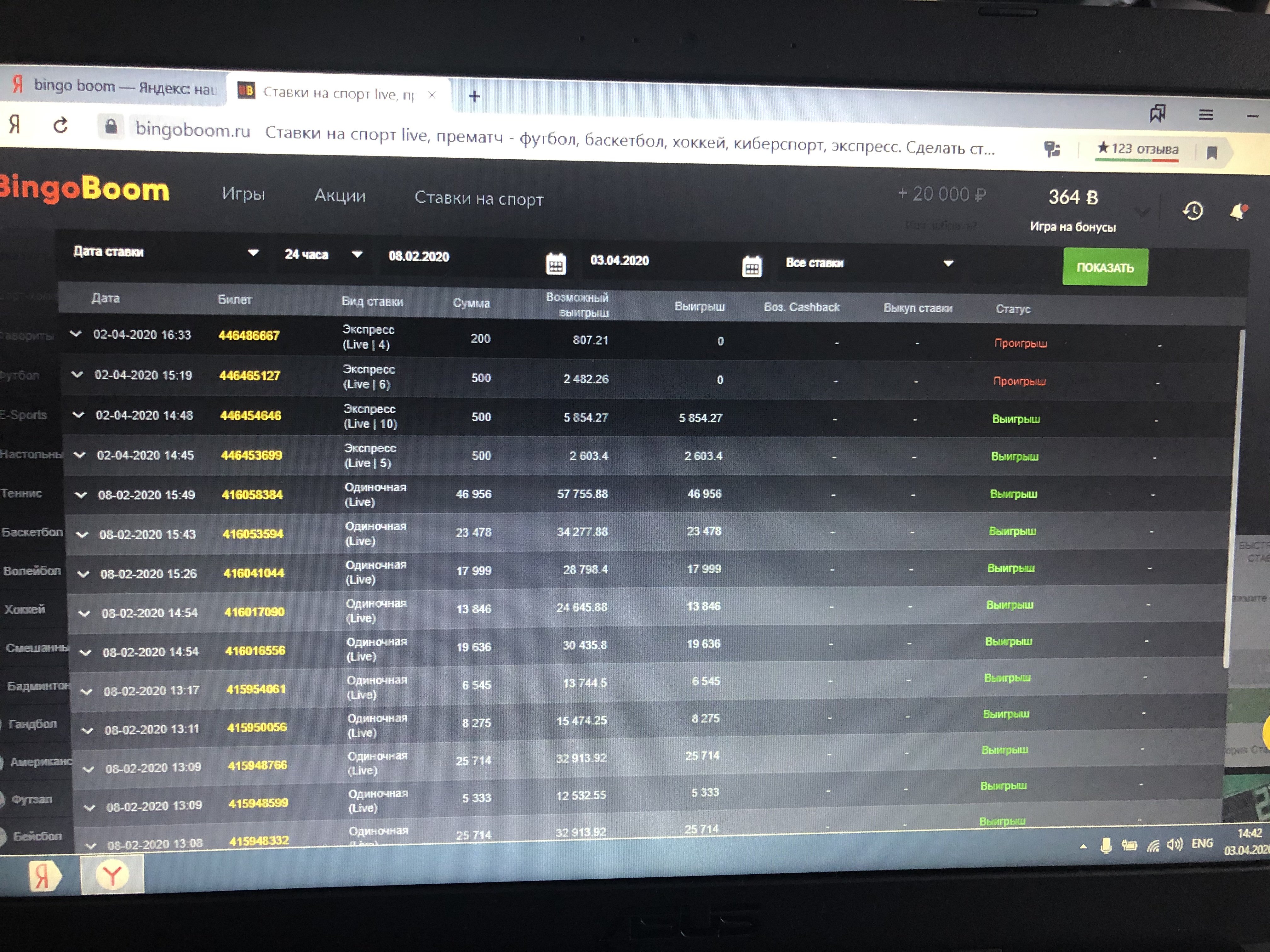 Я где то пару месяцев назад выиграл у букмекерской конторы около 150 000 р после чего смог вывести около 85 000 остальные деньги они списали якобы ставки были пересчитаны с коэффициентом 1 при чем все ставки,и при выводе сразу мне пришло только 40 000 остальные 45 000 мне пришли только после постоянных звонков в поддержку и спустя почти два месяца!мне сразу же после всего этого уменьшили максимальные ставки до 500 рублей.Сегодняшняя ситуация вообще меня шокировала.После всего этого я все таки решил опять немного поиграть завёл на счёт 500 рублей и увидел что у меня есть деньги на бонусном счету около 2000 рублей и поскольку из-за пандемии матчей очень мало и совсем не те которые я люблю !решил ради интереса поставить экспресс собранный из всей линейки то что была в лайве сделал четыре экспресса два из которых выиграли !сначала выигрыш рассчитали я подумал вывести и создал заявку на выплату и ждал когда же деньги мне прийдут и через некоторое время решил зайти посмотреть как там мои ставки играют поскольку не все экспрессы ещё сыграли и тут у меня возникает проблема со входом в мой аккаунт!я позвонил в поддержку мне сказали что мой аккаунт обрабатывают аналитики и временно приостановлена работа моего аккаунта!и не называли сроки сколько мне ждать и сказали что со мной свяжутся !прошло около двух часов я решил попробовать зайти на счёт и увидел ноль на счету хотя я оставил 900 рублей на денежном счету и около 500 на бонусном чтоб потом ещё делать ставки !позвонил в поддержку на что мне ответили что выигрыш был конфискован за то что они мне выплатили в феврале за те ставки которые они типа рассчитали с коэффициентом 1!