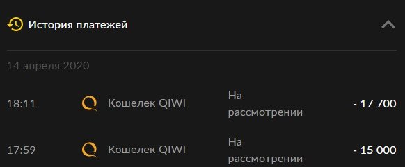 Здравствуйте, поставил на вывод 15000 р. в 18:59 и 17700 р. в 18:11 14 апреля 2020г. до сих пор не вывели, хотя говорили в поддержке , что вывод длится не более 48 часов. Прошу помочь в этой проблеме и вывести мои деньги.