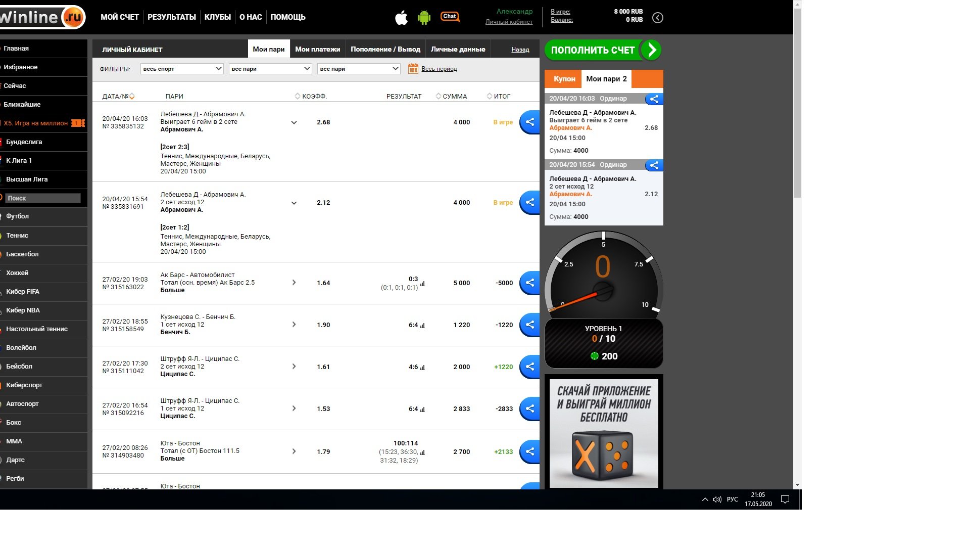 Добрый день,являюсь активным игроком конторы Винлайн. Поставил две ставки на теннис женский , сначала рассчитали выигрыш ,все хорошо , поставил на вывод , вывод отменили , ставки поставили в статус в игре и не рассчитывают. Обратился в службу поддержки , сказали выплата до 90 календарных дней. Я бы понял если бы были большие суммы , но две ставки по 4тыс каждая. Хотелось бы решить этот вопрос, за ранее спасибо.