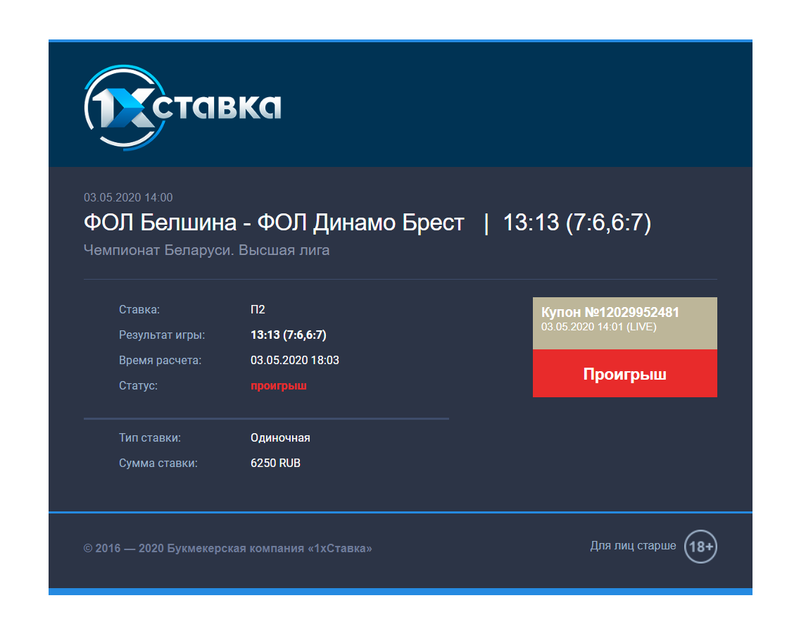 Здравствуйте. Неправильно рассчитали купон 12029952481. На официальном источнике Беларуси результаты по фолам 13:14: Прошу пересчитать купон по официальному источнику.